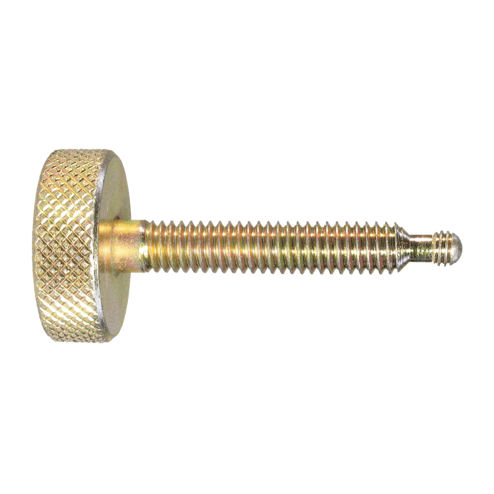 High-quality thumb screw that accepts a wide assortment of swivel feet (order foot separately). Knurled head provides a positive grip for finger tightening in light clamping applications. Available in zinc-plated steel with thread sizes from 1/4-20 to 5/8-11. Available in black-oxide-finish steel with thread sizes from 1/4-20 to 5/8-11 (M6 to M16 in metric). Available in stainless steel with thread sizes from 1/4-20 to 1/2-13. Choice of several lengths in each thread size. Made in USA.