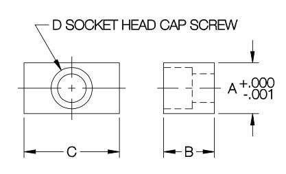 Standard rectangular key for fixtures slotted to mount on one specific machine table. Depth of slot in the fixture should be 1/2 of the B dimension. Available for table-slot sizes from 1/2 to 1-1/16″ (12 to 20mm in metric). Fasten with a socket-head cap screw. Made in USA.