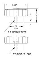 Thermoplastic knob with a textured non-slip, non-glare finish. Large easy-grip knob that is excellent for either fine-adjustment or high-torque applications. Molded-in brass insert provides superior thread strength. Choice of three knob sizes, with tapped-hole sizes from 1/4-20 to 3/8-16. Non-standard thread sizes, reamed holes, molded-in studs, or special colors are available in quantities of 500 and above. Made in USA.