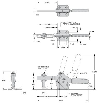 CL-650-HTC Open Arm, Flanged Base Largest and strongest horizontal-handle hold-down clamp. Arm opens 105° while handle moves 75°. Choose either an open arm for adjustable spindle location, or a solid arm for fixed spindle location. 1000 lbs holding capacity.