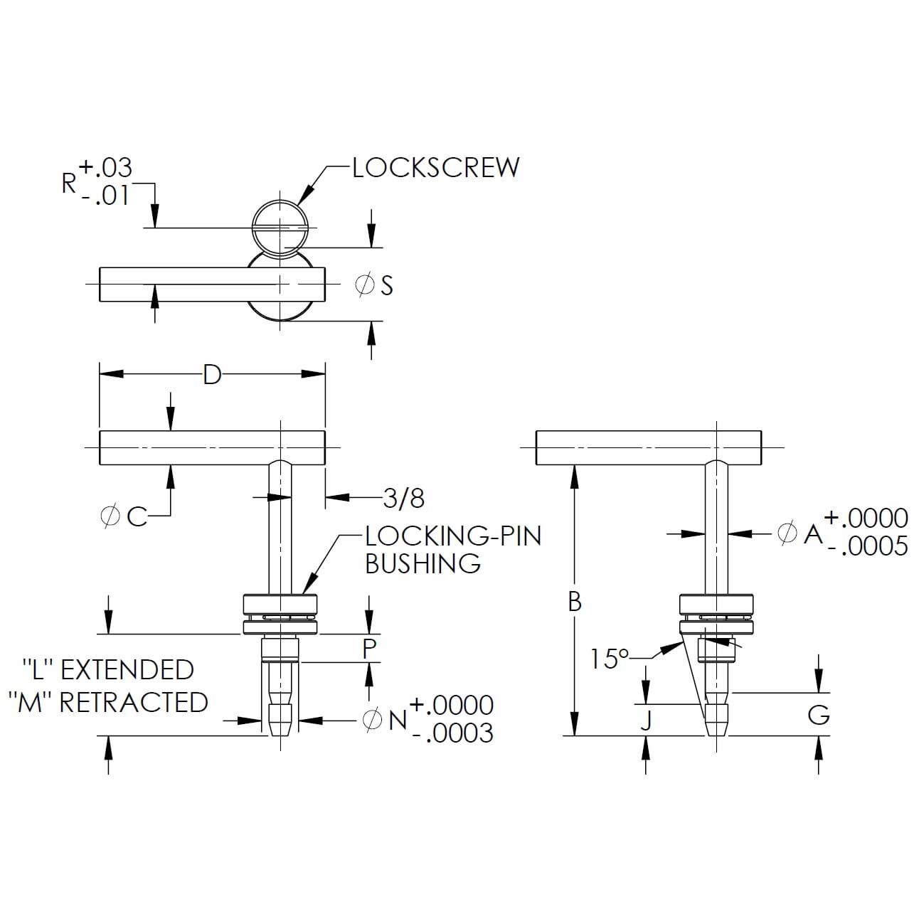 Similar To A Standard L Pin, Except That The Pin Body Is Positively Retained In A Locking Bushing. In Fully Retracted Position, The Bushing’s Spring Clip Snaps Into The Pin’s Radial Groove. This Holds The Pin Fully Retracted By Spring Force And Positively Prevents Removal. Spring Pressure Also Holds The Pin In Intermediate Extended Positions, An Advantage Especially If The Fixture Is Turned Upside Down. Available In Pin Diameters From 3/16 To 1/2″ (6 To 12mm In Metric), Most In A Choice Of Several Pin Lengths. Patent No. 3,471,186. Made In Usa.The Complete Assemblies Listed Below Include A Locking L Pin, Locking-Pin Bushing, And Lockscrew. Choice Of Standard Or Long Bushing In Most Sizes, For Installation In Thinner Or Thicker Plates. Locking-Pin Bushings Are Designed To Press Fit In A Standard Reamed Hole, And Can Be Further Secured With The Included Lockscrew To Positively Hold The Bushing In Place.