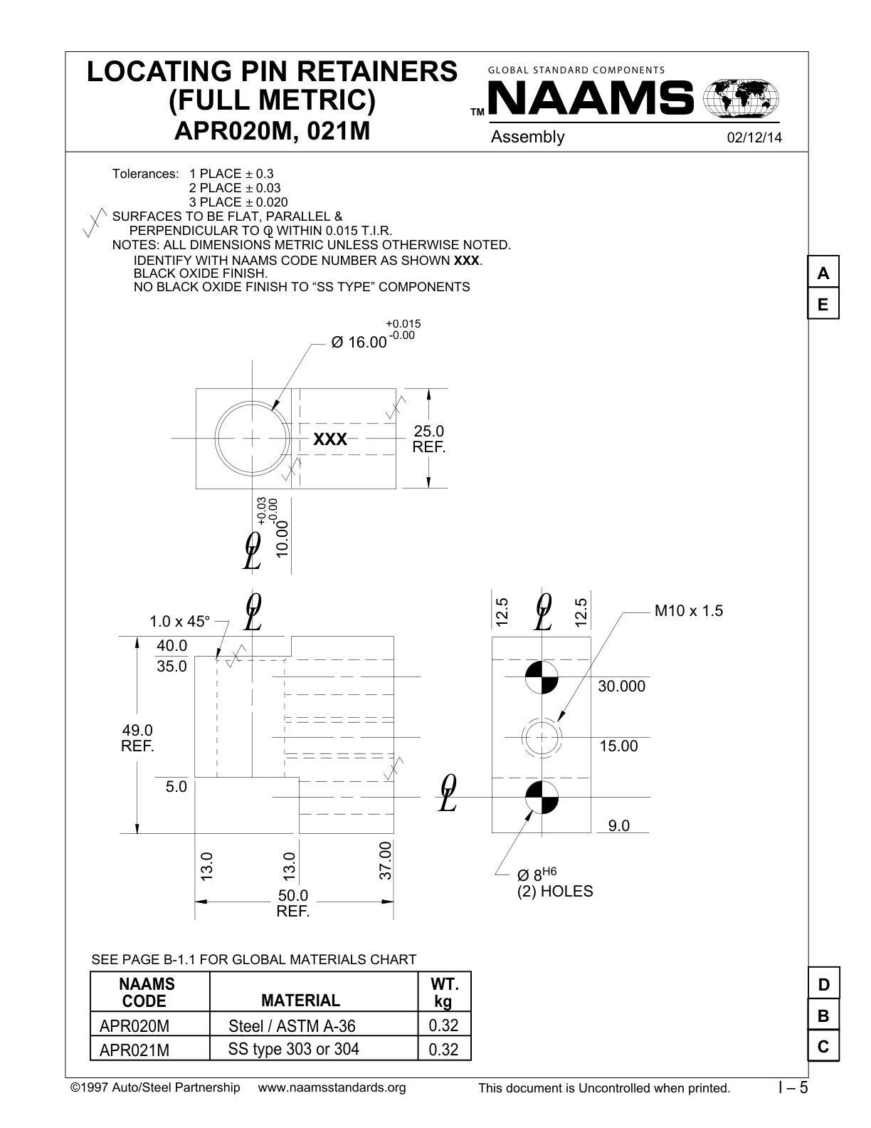 LOCATING PIN RETAINERS (FULL METRIC) APR040M, 041M