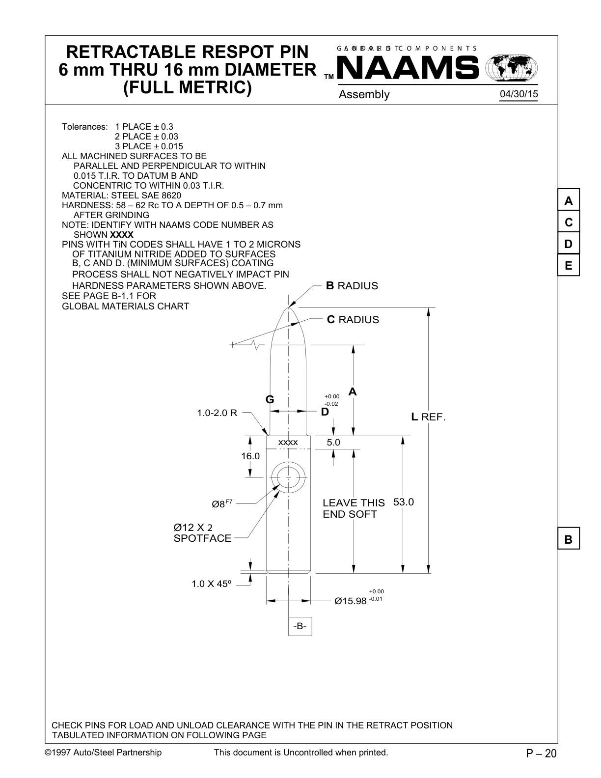 RETRACTABLE LOCATING PIN 6 mm THRU 16 mm DIAMETER (FULL METRIC)