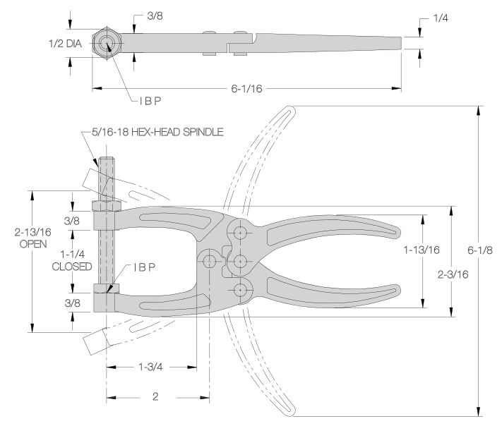 Hex-Head Spindle Medium-Size Toggle Plier – CL-150-PL Series (350 lbs) Jaw Width 1-1/4″